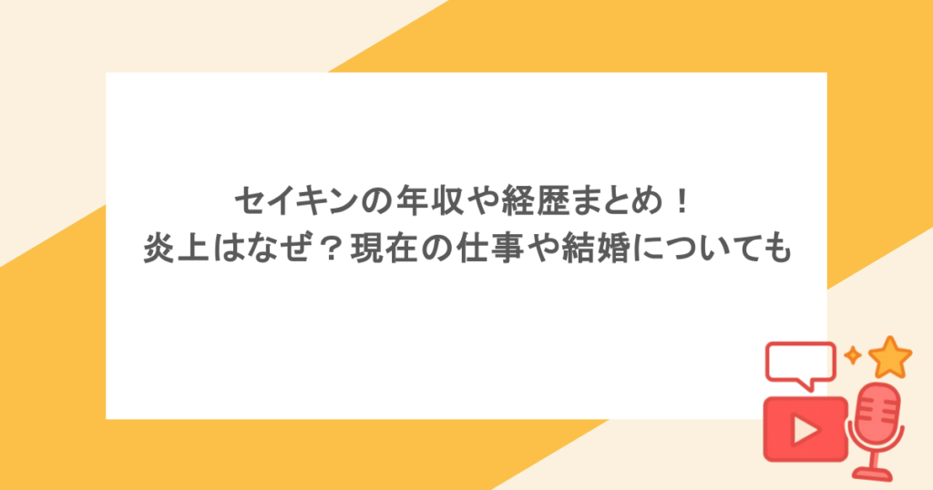 セイキンの年収や経歴まとめ!炎上はなぜ?現在の仕事や結婚についても